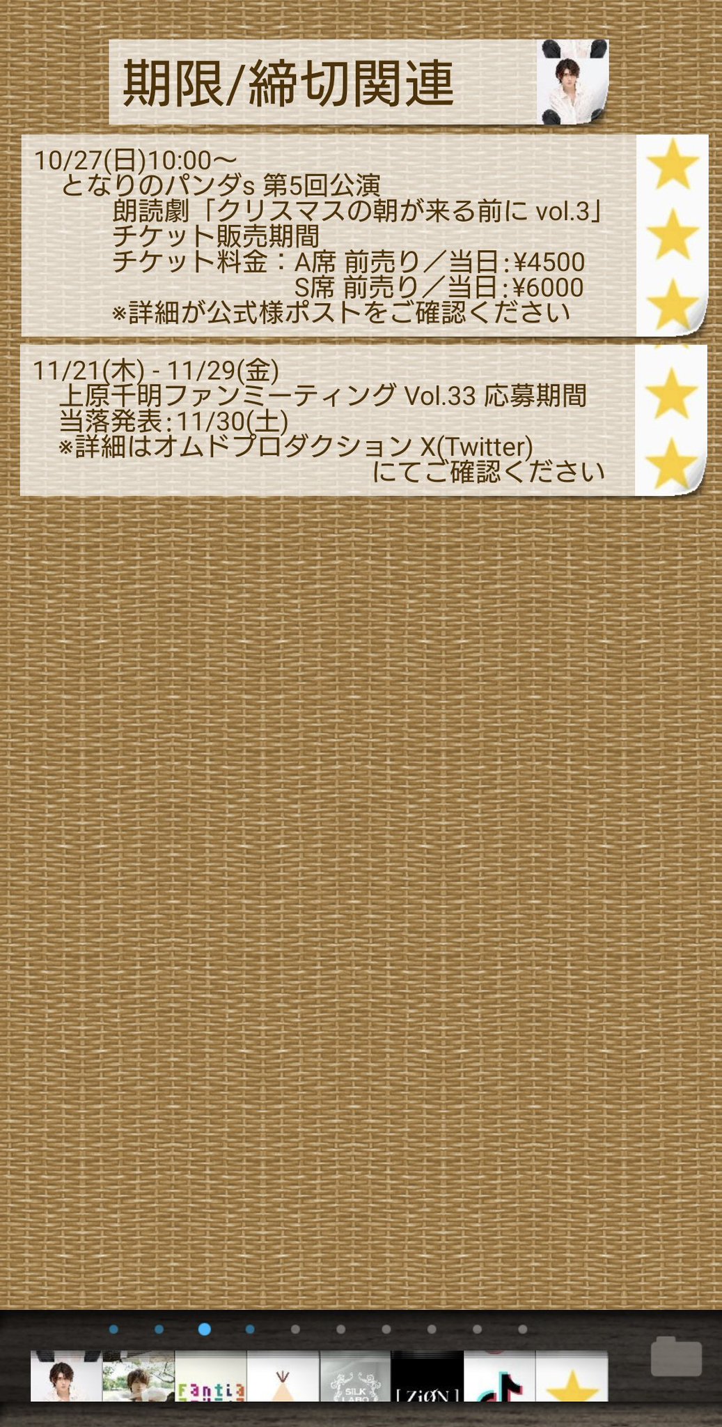 期限や締切があるものと今後の予定については画像もしくは公式TimeTreeをご確認ください!